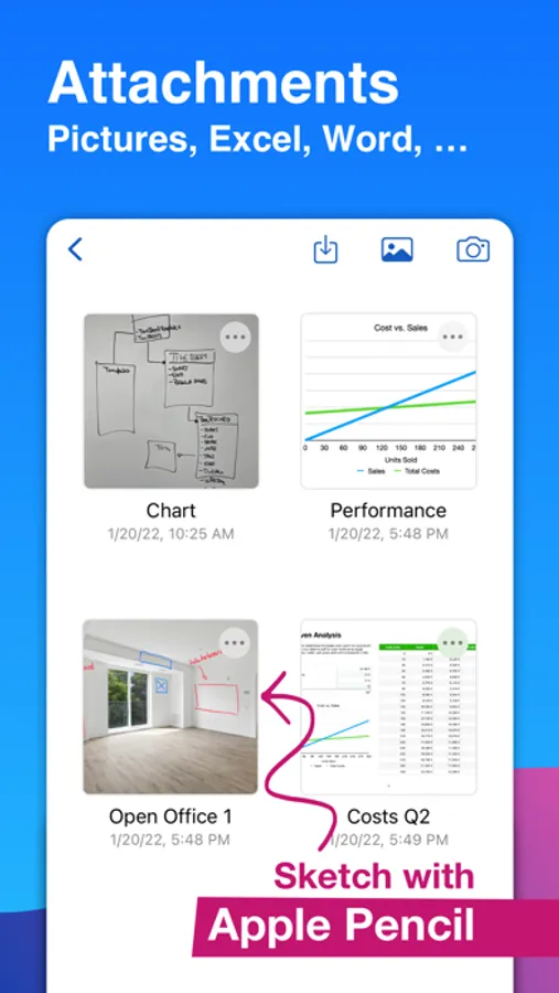 • Pictures taken from a flip chart or whiteboard with the device’s camera