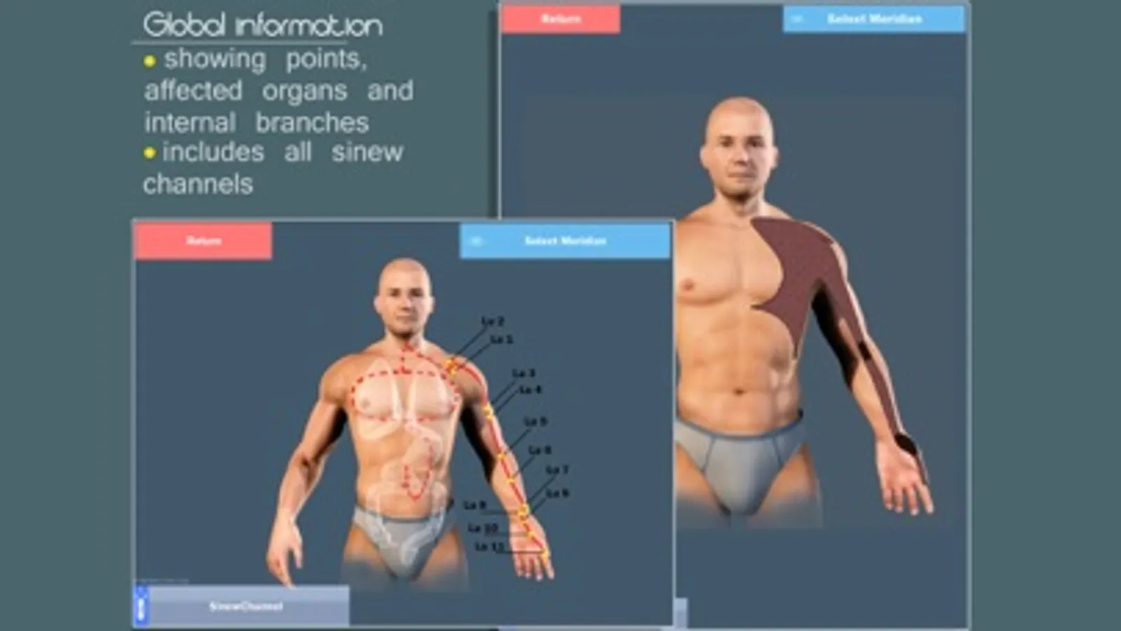 This app’s main focus lies on user friendliness and ease of use. Be able to quickly switch between information about different acupuncture points & meridians. Understand the flow and locations of points and meridians better with the simple & interactive 3D functionality. Study interactively by tabbing on acupuncture points or meridians to show their name, learn more about a selected point or meridian by clicking on this name (this will take you directly to the detailed information and images regarding the selection).