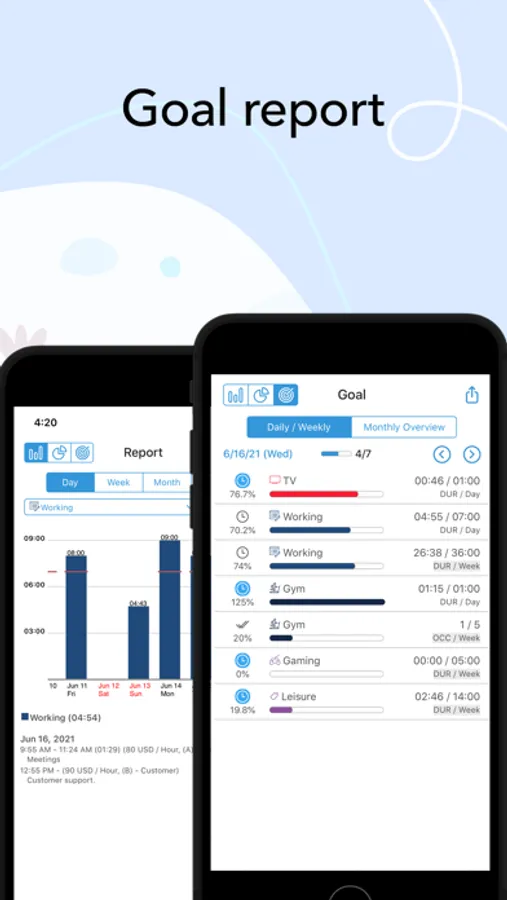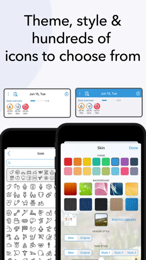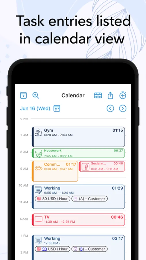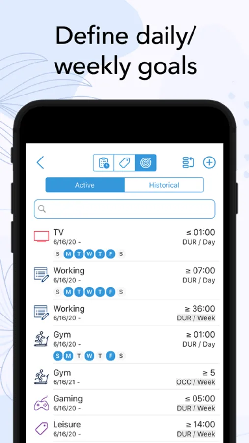 • Customization of activities with hundreds of unique icons to choose from. You can also color code the activities for a personalized time tracking experience.