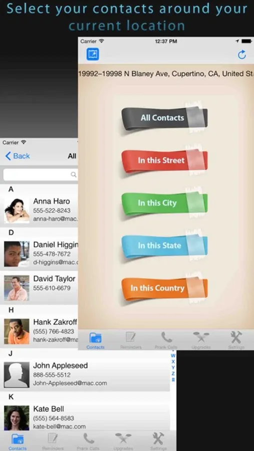 • Ability to search/filter your contacts on the basis of current location, current street, city, state or country with a single tap