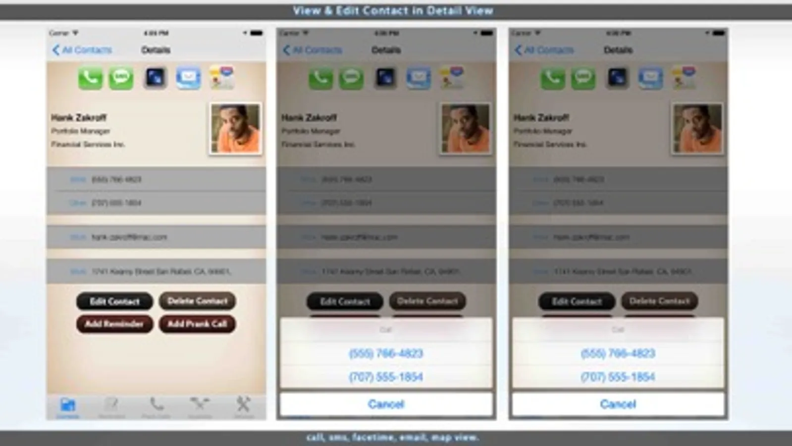 • A number of essential features in the contact details including facetime, call, SMS, email and map view of the location of someone in your contact