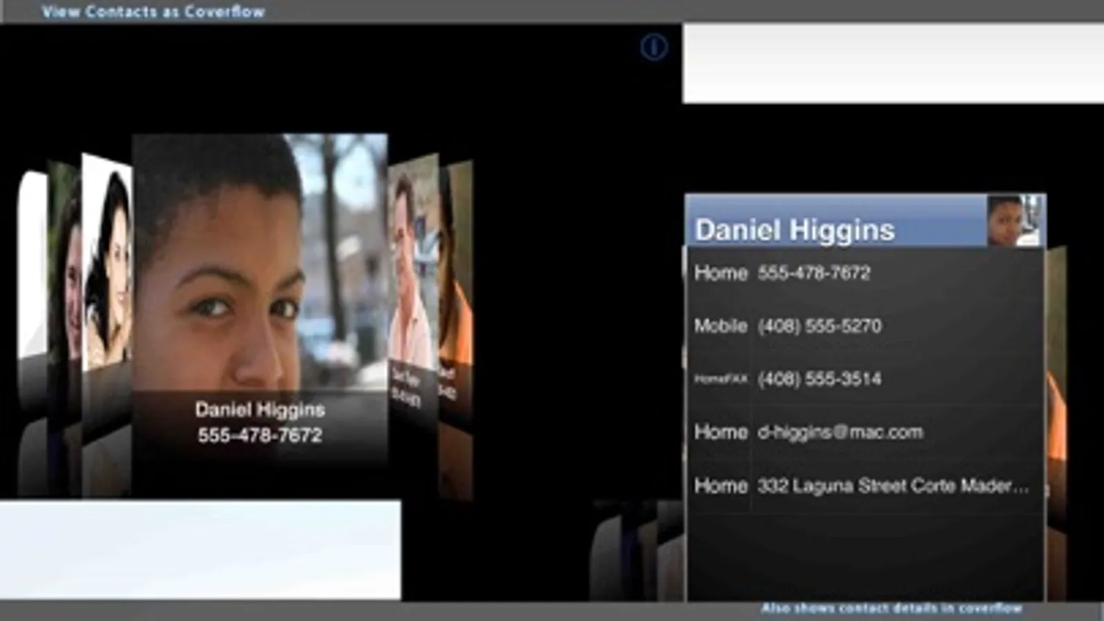 • Can show all your contacts in coverflow view. Coverflow view can also show details of a particular contact.