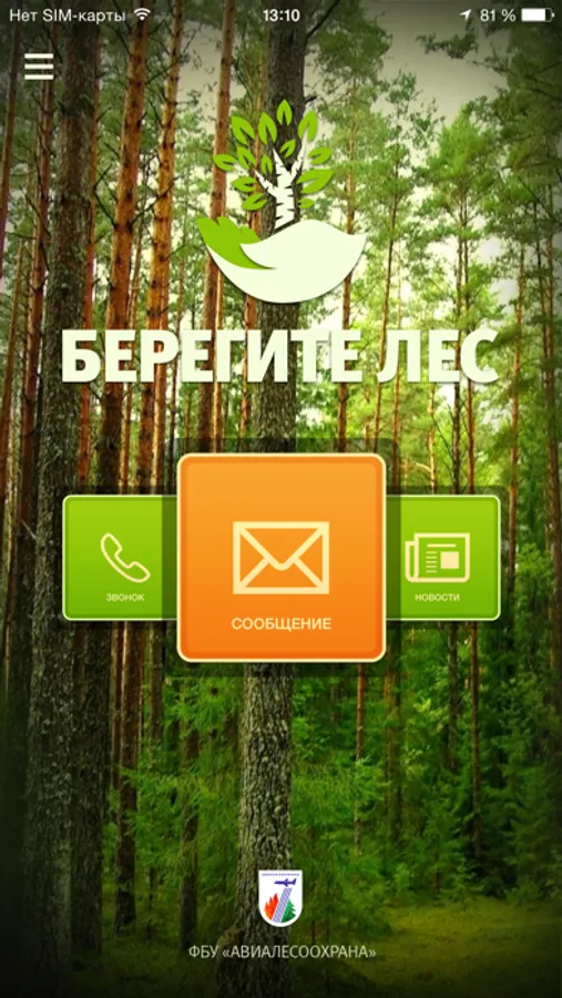 Берегите лес! Заметив в лесу пожар или другое происшествие - сообщите об этом в Федеральную диспетчерскую службу лесного хозяйства посредством этого приложения.