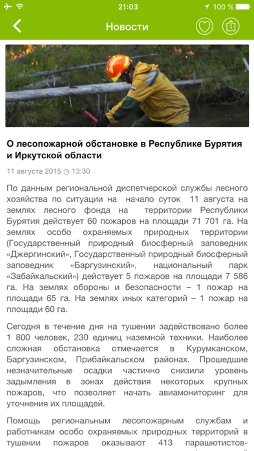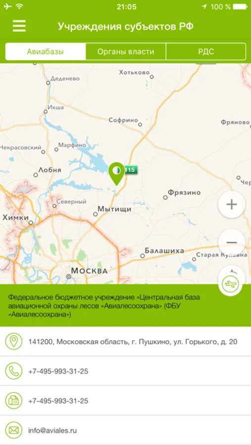 В приложении доступны новости Федерального агентства лесного хозяйства и ФБУ «Авиалесоохрана», на карте отмечены Региональные диспетчерские службы, Региональные учреждения авиационной охраны лесов и Органы исполнительной власти, уполномоченные в области лесных отношений.