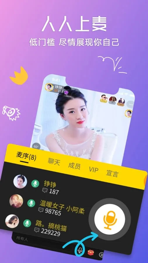 聊聊 for iPhone 是一款非常时尚流行的语音聊天应用,让你的声音同时影响数千人;麦霸、mc喊麦的专属语音平台。