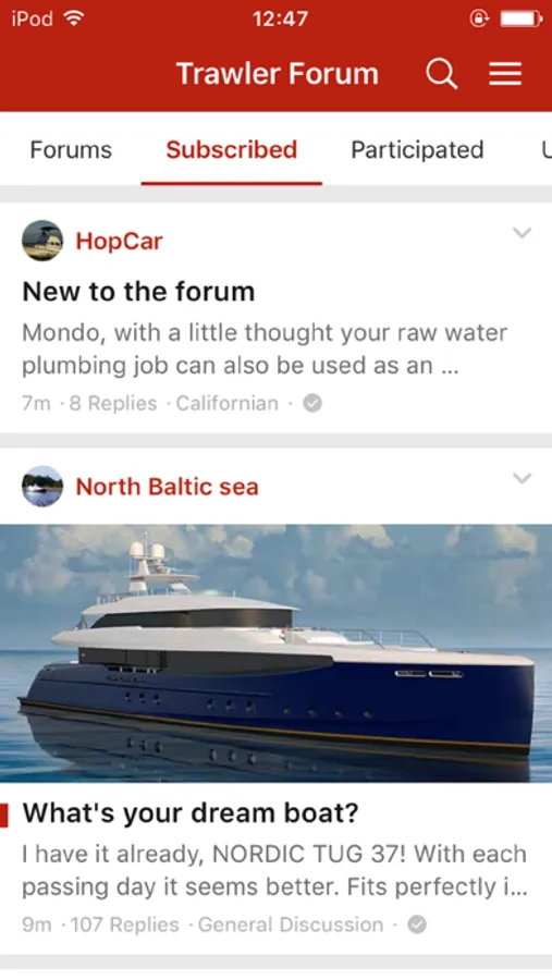 TrawlerForum.com is the leading online community for Trawler Boats. Our Mobile App allows you access to our forums. You can post questions from the dock, or even while at sea. Upload photos of your Trawler, find great tips & tricks from other members and even get involved in regional meets. Tons of technical help on all aspects of a Trawler, from cleaning and maintenance to