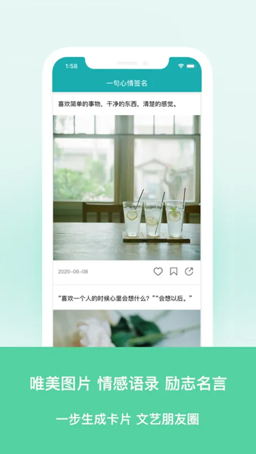 ◉ 我们是一个极简的每日阅读应用,没有复杂的功能,我们喜欢纯净和简单,相信优美文字和图片的力量,带给我们每日温暖!