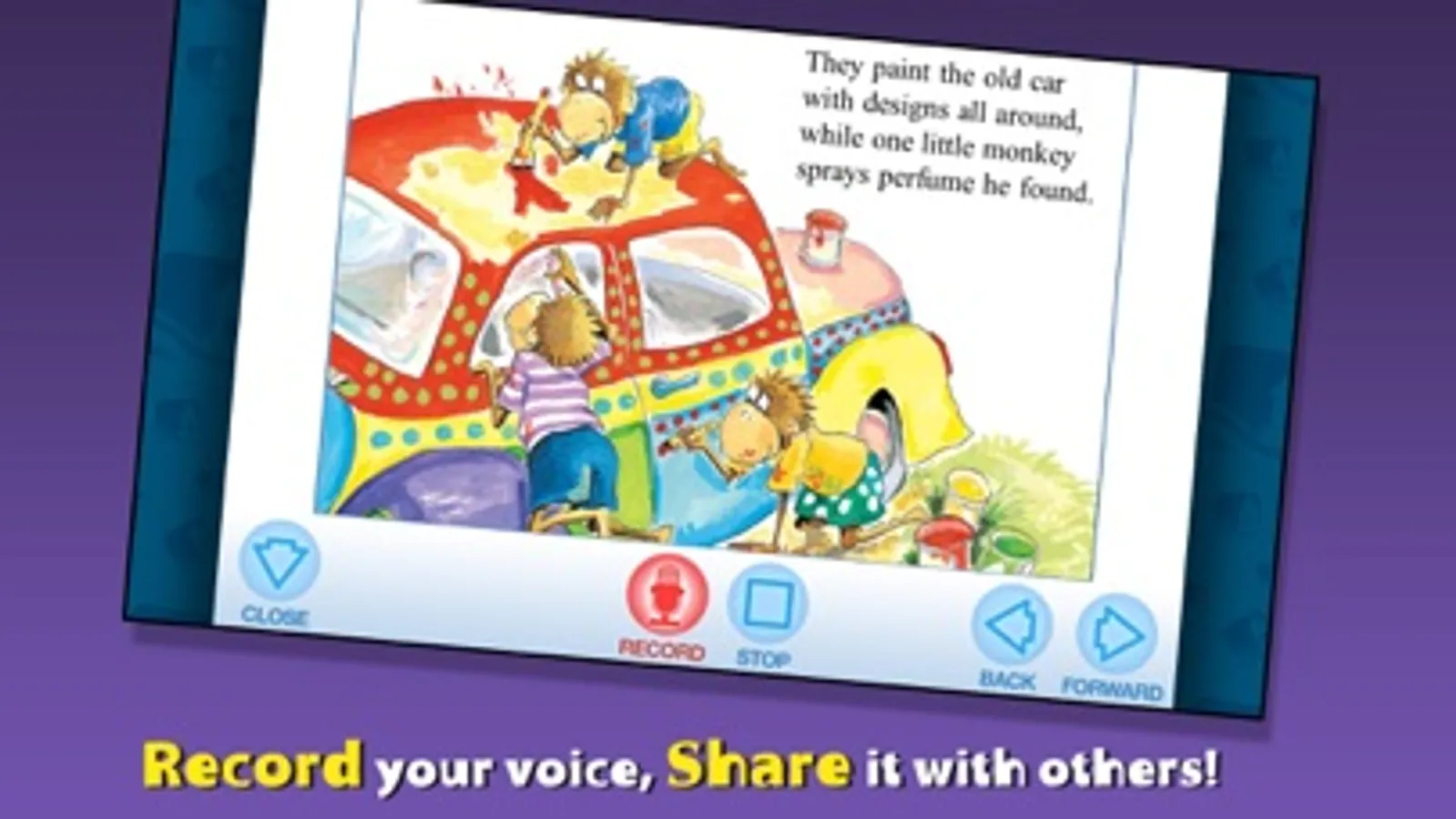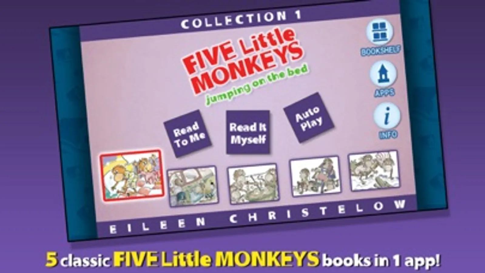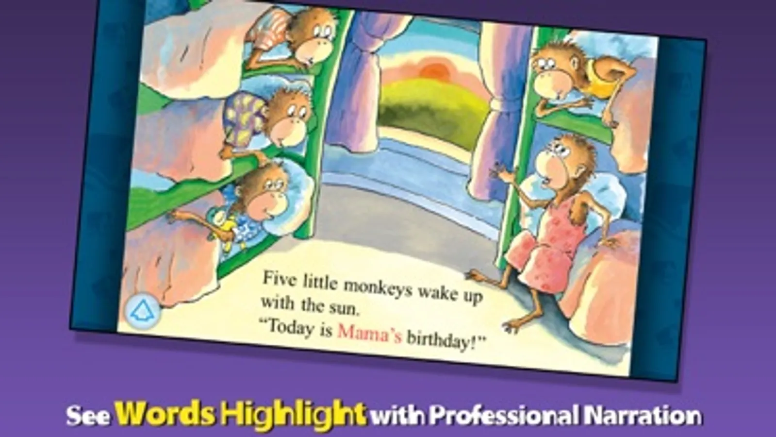 Dive into 5 exciting interactive book apps featuring the Five Little Monkeys- a group of clumsy but well-intentioned little monkeys who don't always get things exactly right, but always have a good time! Explore pictures, learn new vocabulary, and personalize each story with your own narration. Enjoy Five Little Monkeys Jumping on the Bed, Five Little Monkeys Bake a Birthday Cake, Five Little Monkeys Wash the Car, Five Little Monkeys Sitting in a Tree, and Five Little Monkeys With Nothing to Do, all in one convenient place.
