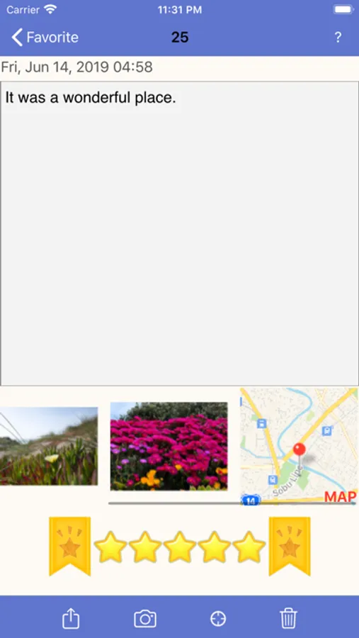 This App is a notebook that can store multiple photos, maps and notes on a single page.