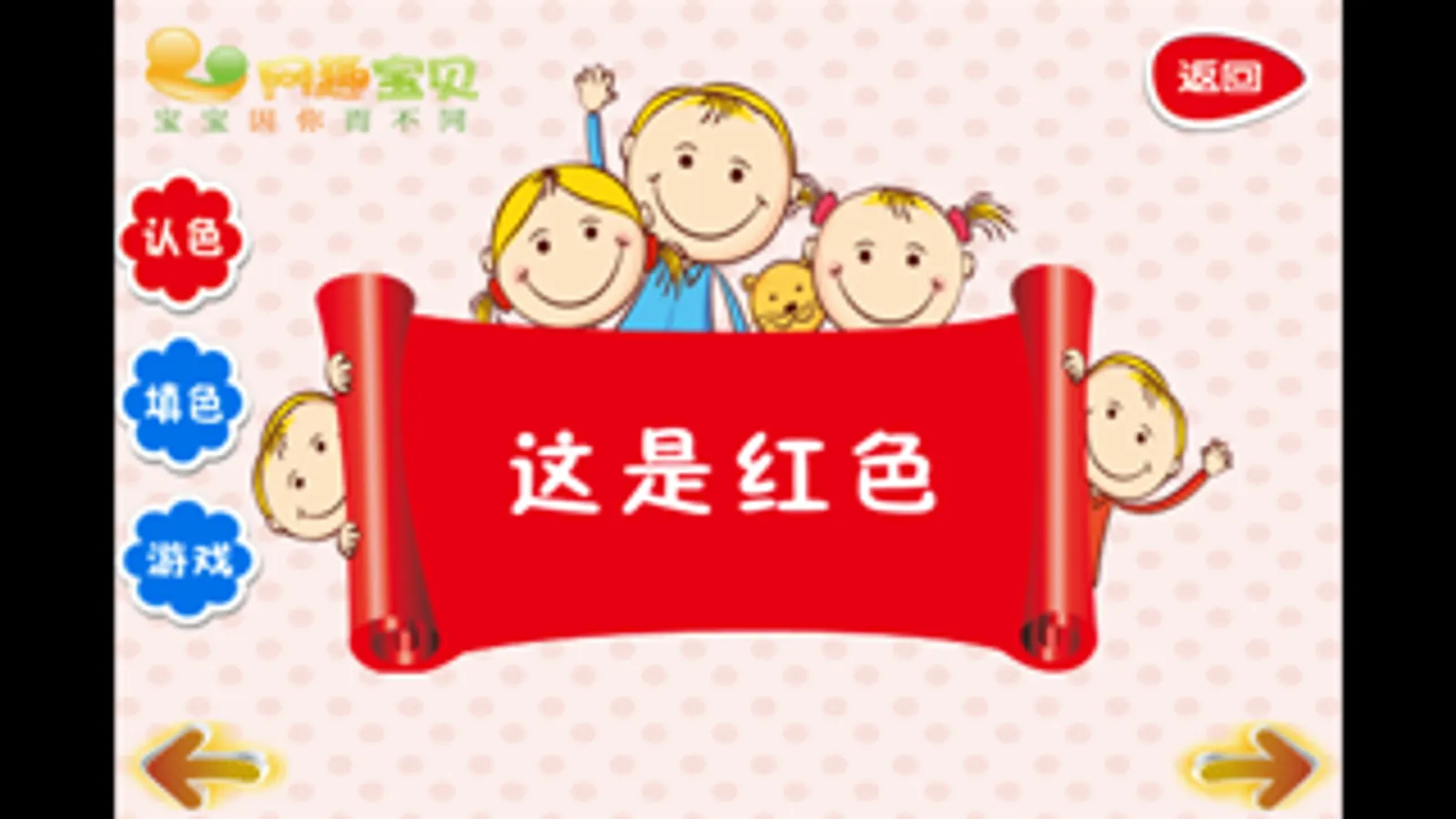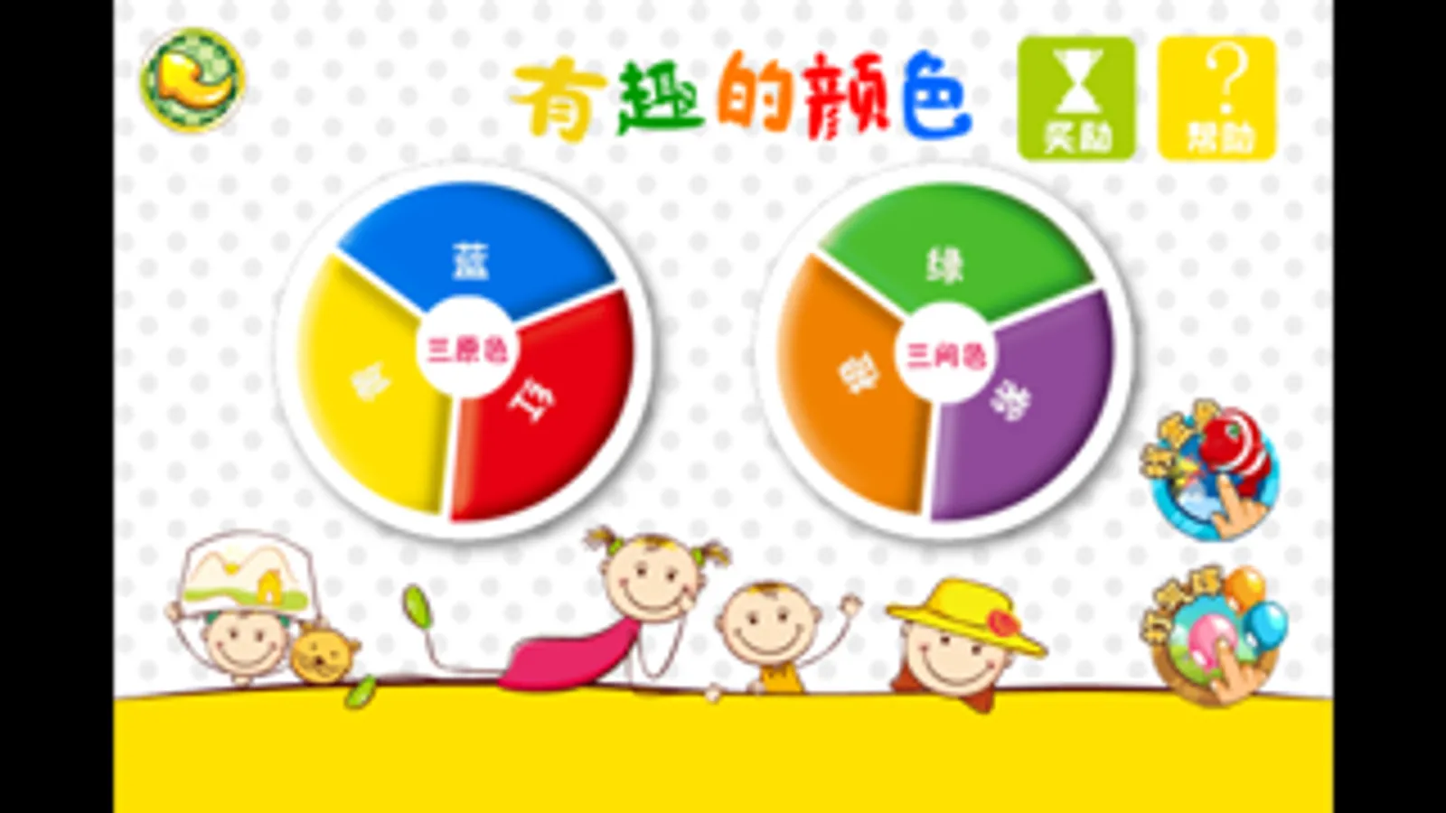 “有趣的颜色”是网趣宝贝美术体系中第一个也是最基本的一个模块,是帮助宝宝认识三原色和三间色的小应用。本应用共包含两大部分,6个认色模块,18款小游戏。