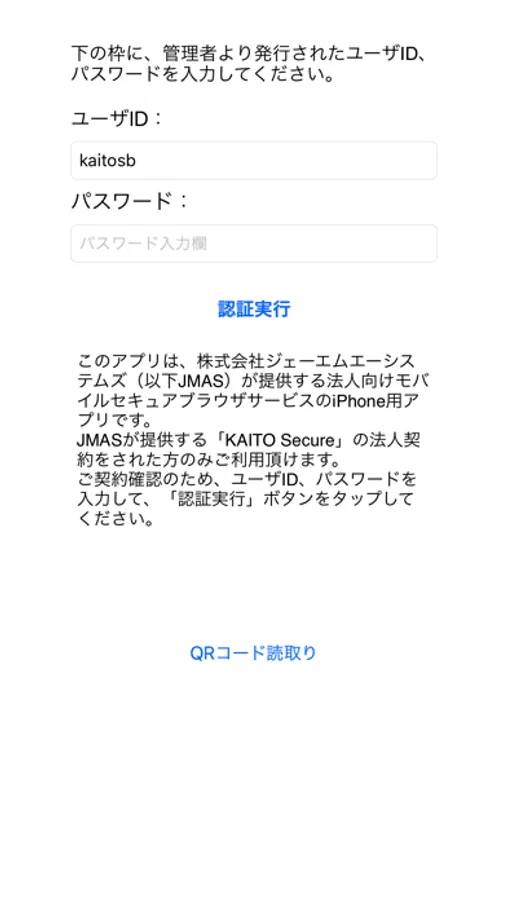 このアプリは、株式会社ジェーエムエーシステムズ(以下JMAS)が提供する法人向け高セキュリティブラウザ「KAITO Secure」のiPadまたはiPhone用アプリです。
