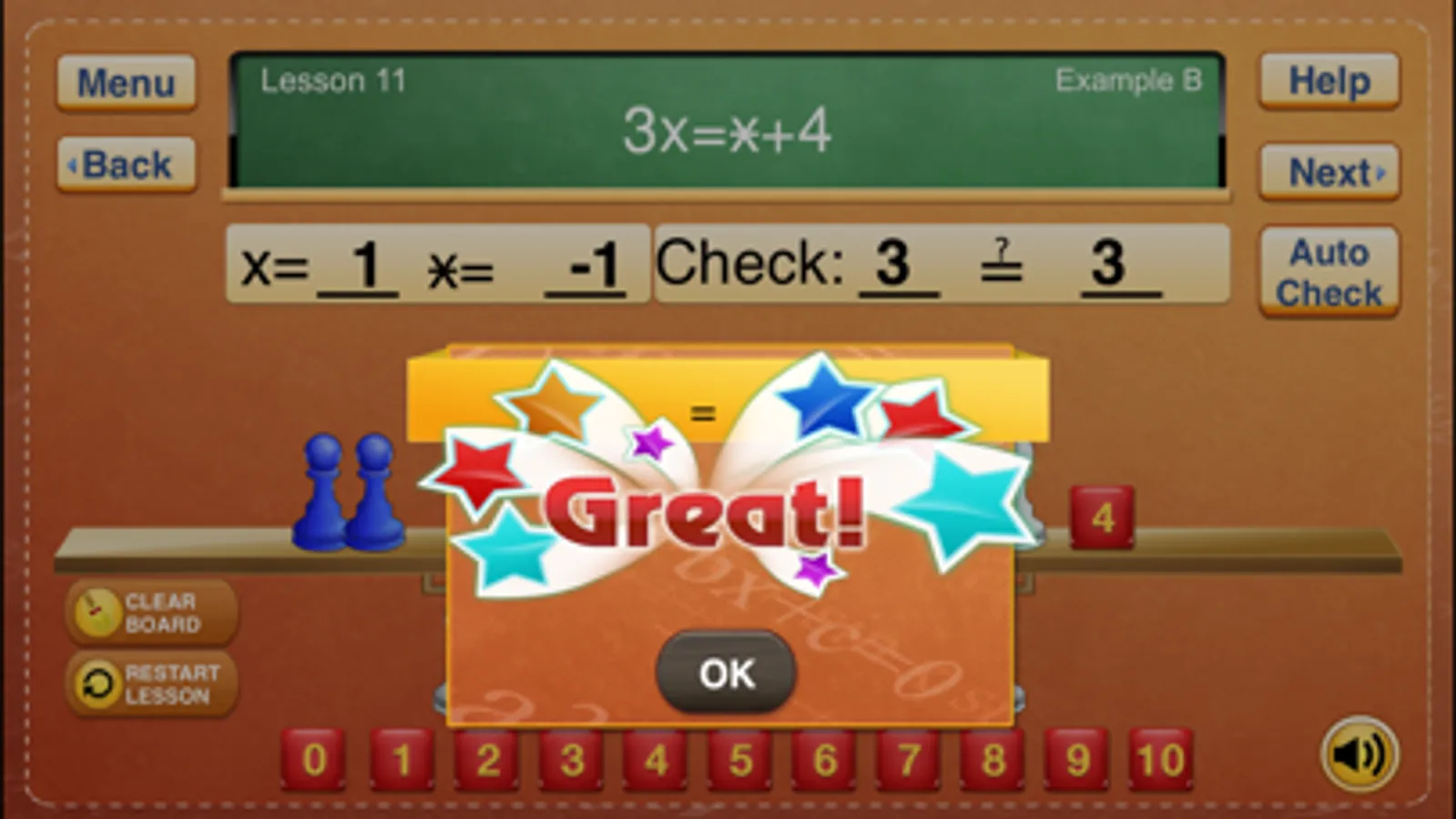 This app for the iPad is intended for students who have already completed Level 1 of Hands-On Equations.