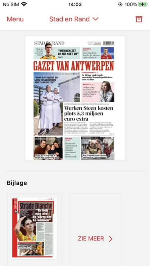 Met de krantenapp van Gazet van Antwerpen blader je op je smartphone of tablet door je favoriete krant. Je vindt er, naast de krant, ook onze bijlagen DNA, citta, de markt en Billie.