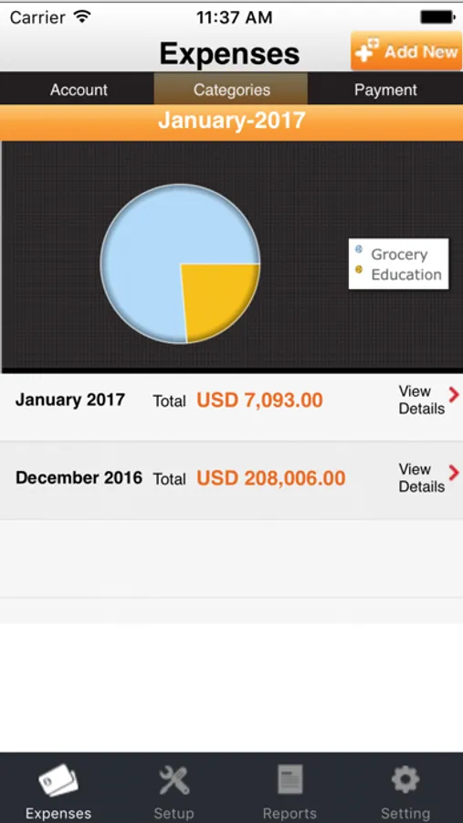 2. ORGANIZE your expenses by category (Fuel, Travel, Rent...) and by account ( Personal, Family, Business...) to CONTROL your expenditures.