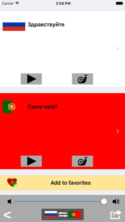The Russian to Portuguese phrasebook and translator is also useful for language learning / improvement: you can save the phrases in a favorites section for easy access, and use them later to train yourself with the pronunciation.