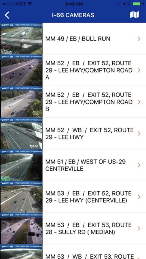 Access to VDOT cameras, incident reports, construction, bridge openings, and more is provided on the map by toggle option from the overlays menu in the upper right. Tap the pencil in this menu to re-order the Map Layers in the menu as you desire.