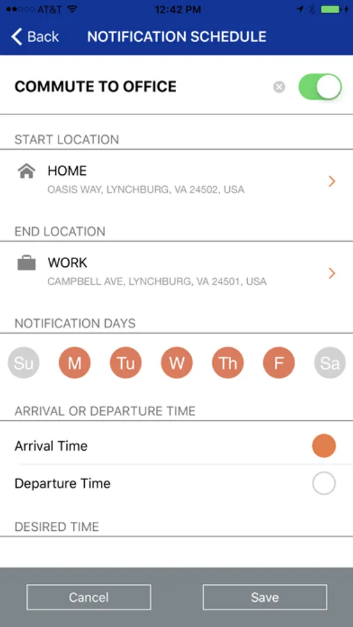 The main menu in the upper left provides access to Twitter feeds, cameras by route, travel times for predefined road segments, links to other commuter services for your area, and more. Settings can be accessed at the bottom of the main menu, and includes an option to sign up for trip notifications. Trip notifications allow you to define a recurring trip and desired arrival time, and receive a push notification in advance of the necessary departure time based upon the current traffic each day. Please note that traffic conditions can change rapidly, and travel and arrival times are a best estimate, but can never be a guarantee.