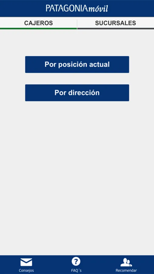 - Buscar cajeros automáticos de Banco Patagonia en toda la Argentina ingresando una dirección manualmente o través del GPS del celular