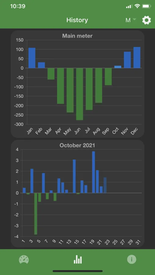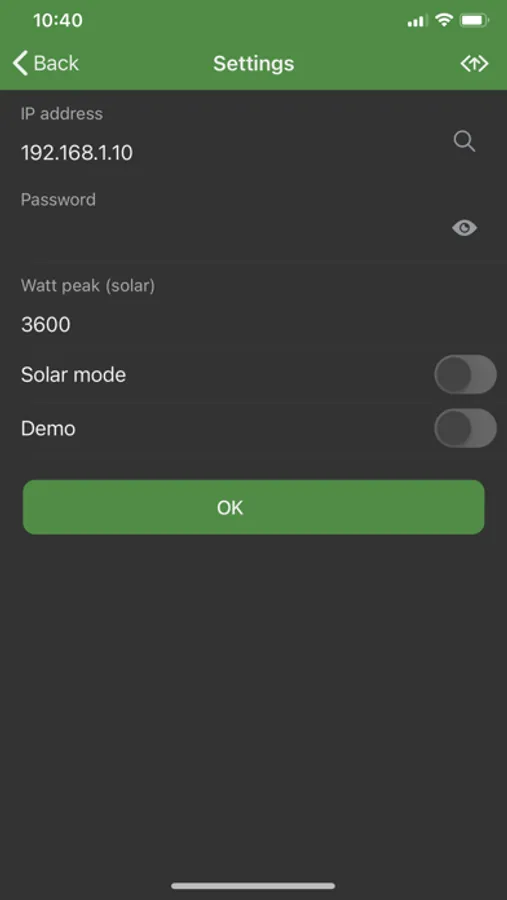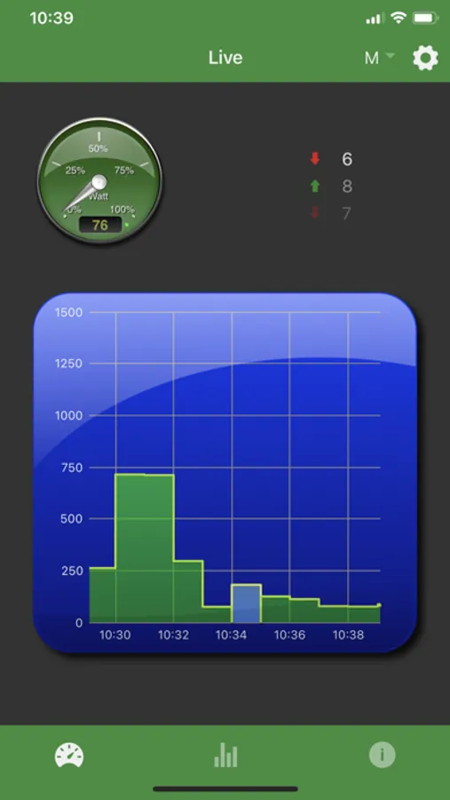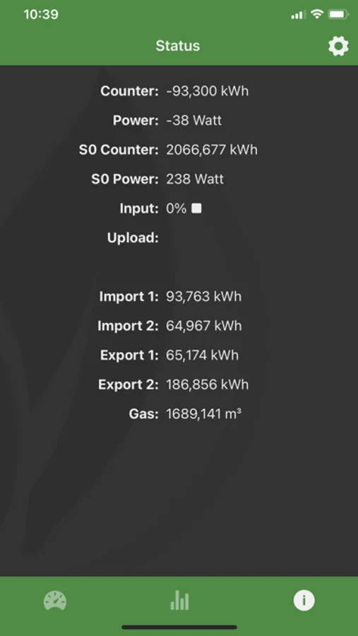 This app is part of the Youless energy monitor product. It connects directly to the Youless energy monitor model LS110 or LS120, and provides a real-time display of current energy consumption and / or energy generation.