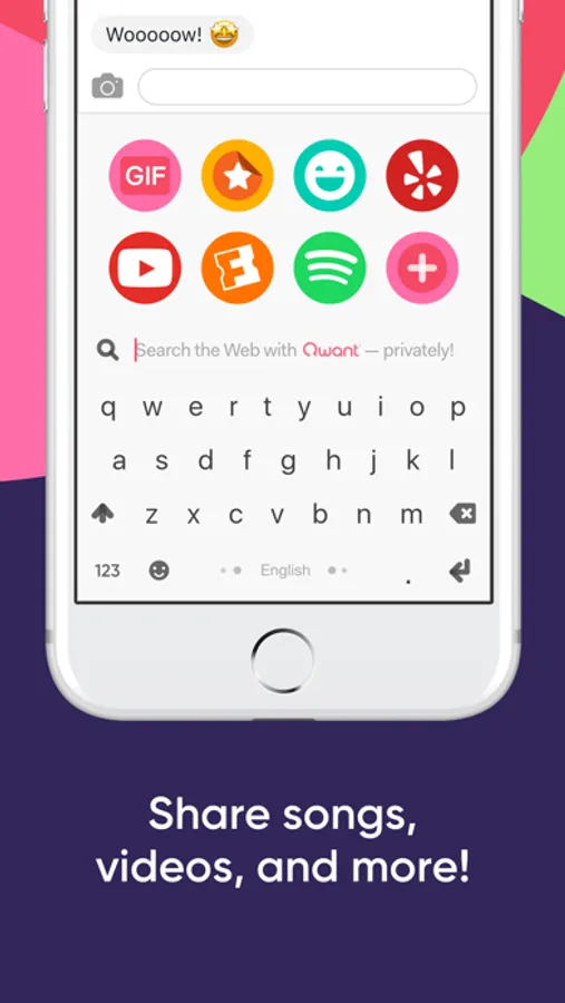• The only keyboard to find and send music, videos, places, GIFs, Stickers, Memes and more while typing. No keyboard saves you more time!. (Spotify, Youtube, Qwant, ...)