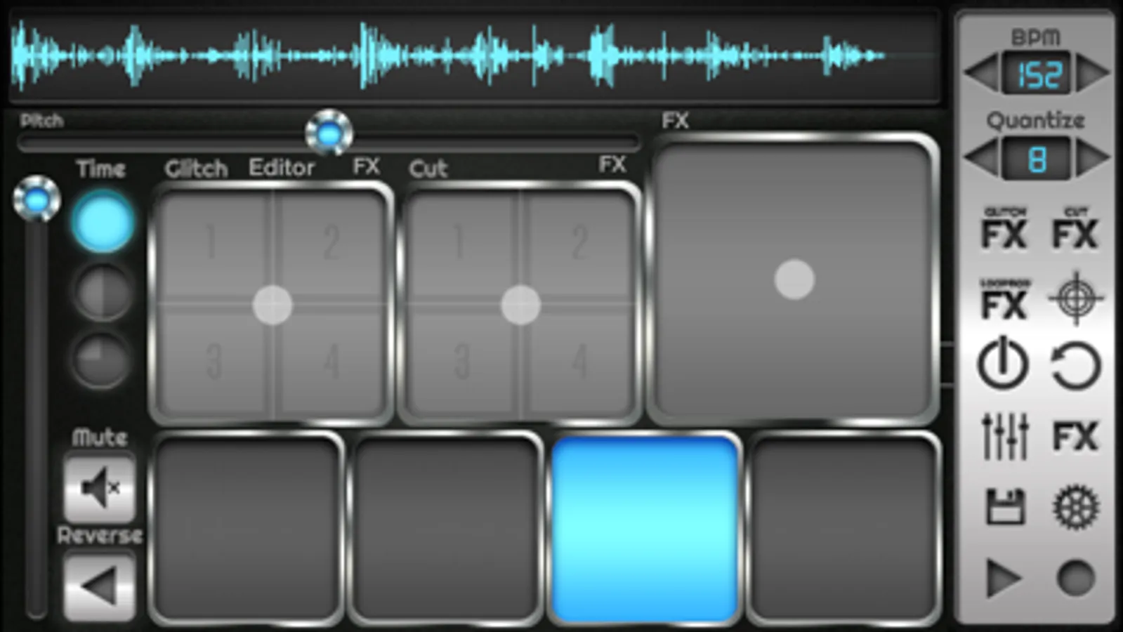 Glitchbreaks contains a 4 channel mixer to adjust the levels of each sample, as you change the levels the sounds are combined into the mix, on the iPad version this is displayed graphically with a rendered waveform that is combined to give you an indication of what the entire sound looks like.