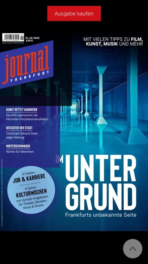 Für Abonnenten des JOURNAL FRANKFURT ist die Digitalausgabe des Stadtmagazins kostenlos. Tragen Sie dazu Ihre Abonummer + PLZ (in dieser Form: 123456_65432) im Kiosk unter dem Menü EINSTELLUNGEN ein und laden Sie für die Dauer Ihres Print-Abonnements die Digitalausgaben des JOURNAL FRANKFURT kostenlos auf Ihr iPad.