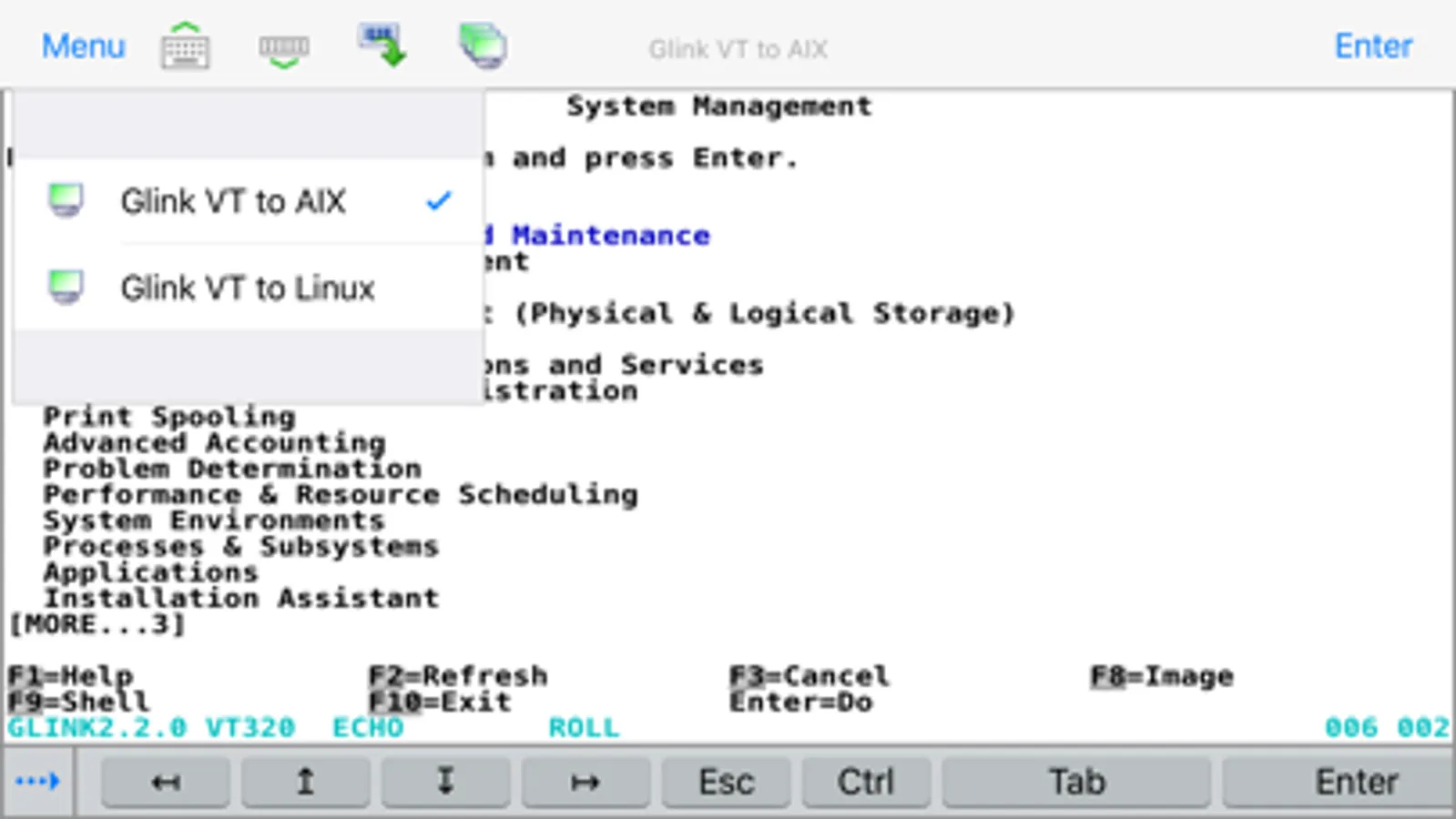 Glink VT is used to access applications running on UNIX, Linux and DEC host systems. Glink VT emulates DEC VT100/102/220/320/340/420 terminals and uses the Telnet or SSH protocols for communication with the host systems.