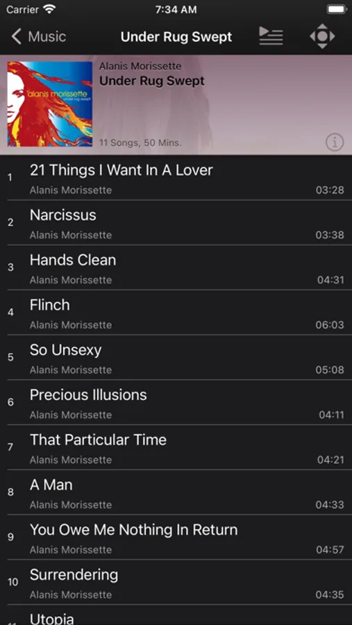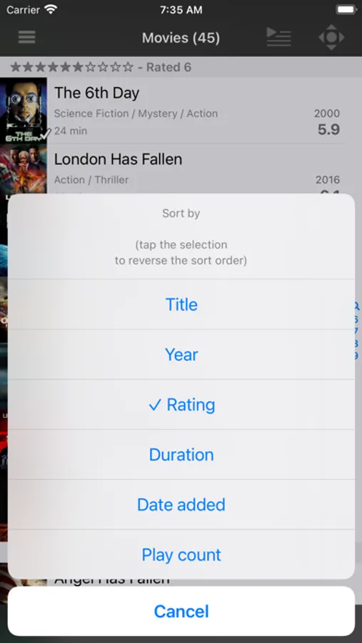 Additional actions can be accessed by long pressing items and remote control buttons.