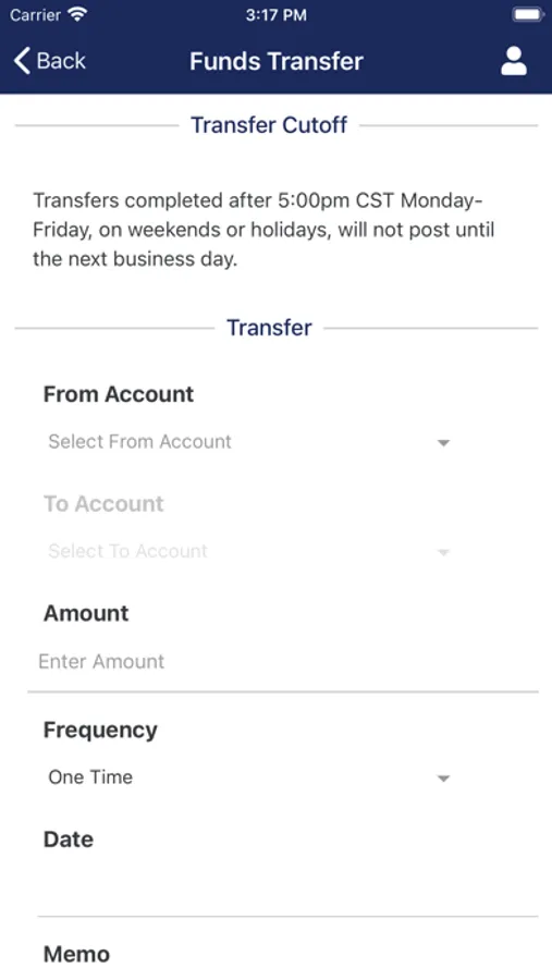 **Online customers must first setup transfer and bill pay accounts prior to using these features.