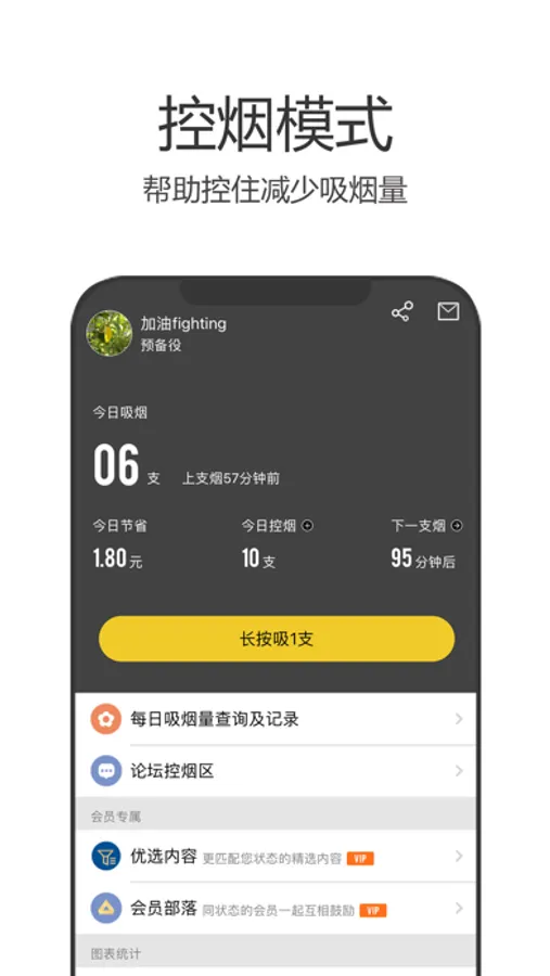 *记录并控制每日抽烟数量,精确图表分析,数据统计