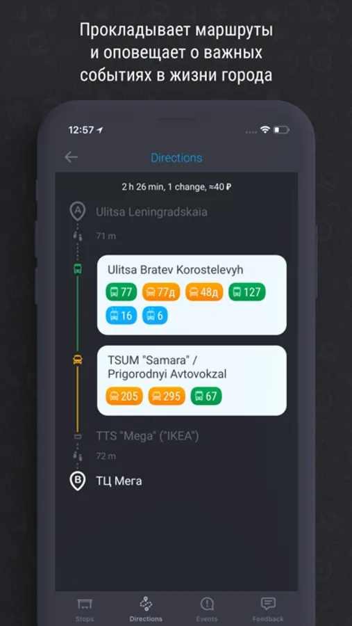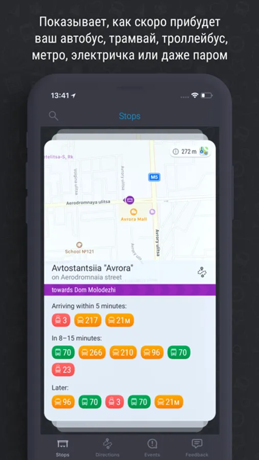 Pribyvalka shows real-time departures for Samara public transport. It is aware of the actual situation on the roads: traffic jams, accidents and schedule.