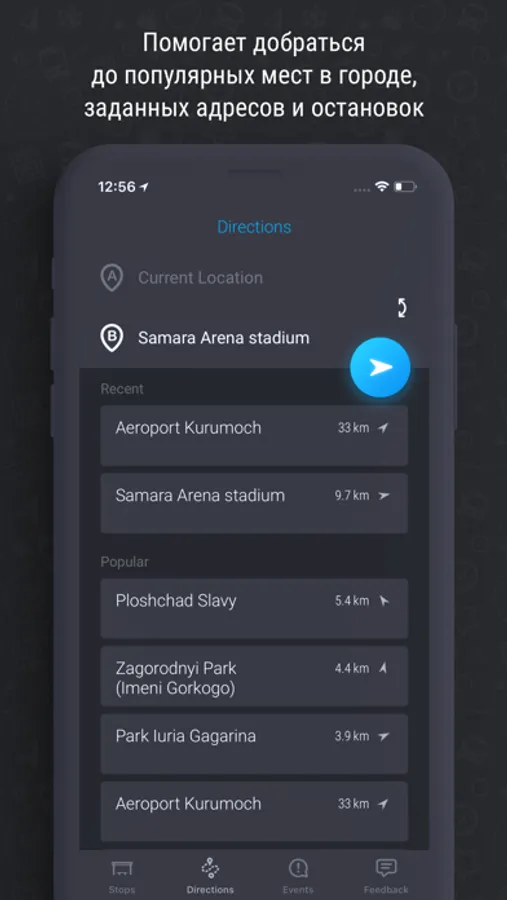— Finds Samara stops and places of interest by name or its adjacent street.