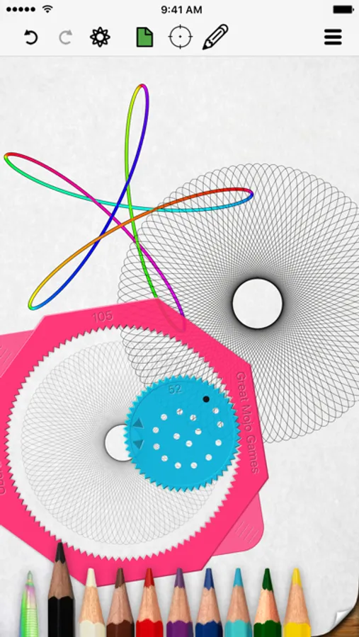 If you like Überdoodle lite, please consider getting Überdoodle with even more possibilities for beautiful patterns. Überdoodle has many more rings and gears - and it contains the Gear Factory where you can create your very own gears and rings with custom sizes and colors. Überdoodle has many different pens and includes an eraser as well. It also allows you to mix pen colors by selecting up to three pens at the same time. It has more paper to choose from when starting new drawings.