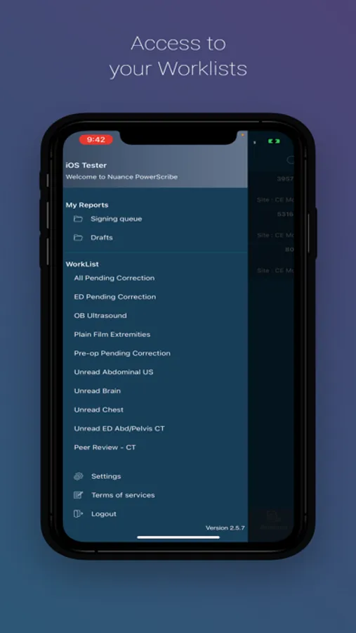 * Reporting Worklists: Provides authorized users with secure access to their worklists. Radiologists can view orders and reports that are present in a worklist that they belong to, and then select a participate record to edit securely edit and sign off from their mobile device.