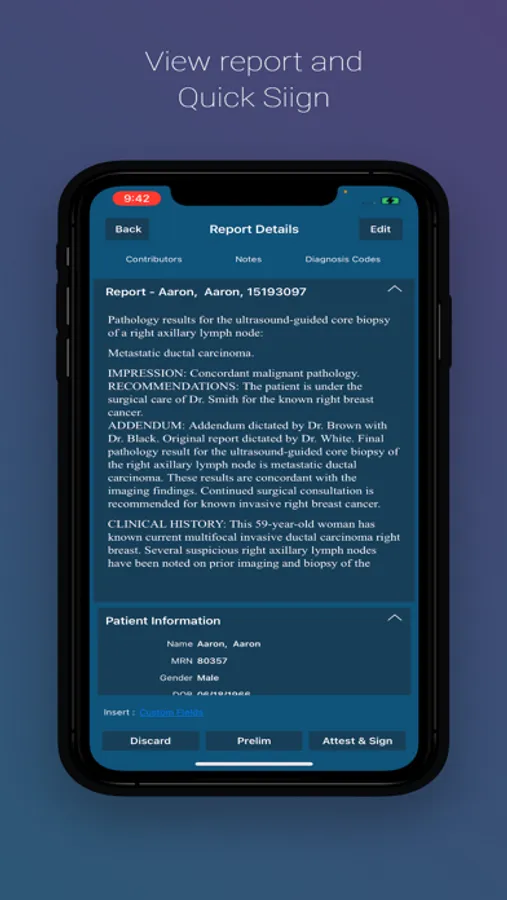 * Create, edit, search and sign: Provides secure access to create, search, edit and sign reports and addenda from the convenience of your mobile device.