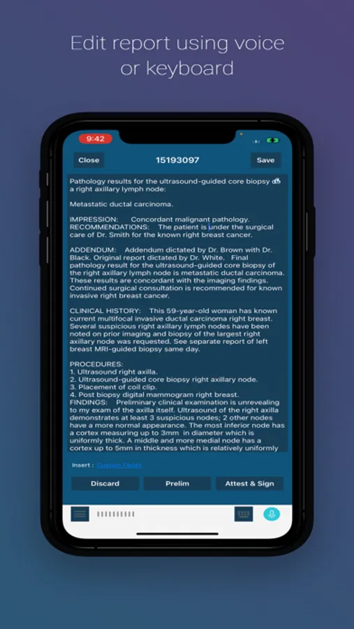 * Report Creation: Allows authorized users to create new reports for an unreported study from their mobile devices. If a report has already been created and signed off, the user can create an addendum to add to the report.