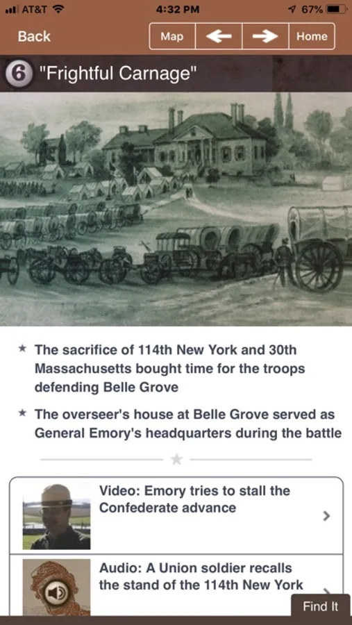 Click on our "virtual signs" to access a wealth of information related to the very spot where you are standing. Onboard historian videos, audio accounts of soldiers from the battle, photos, orders of battle, chronologies, key facts, and more are just a click away. Our detailed maps allow you to locate just where certain Union and Confederate units were during different phases of the battle. Never has so much valuable information been made available in such a portable device.