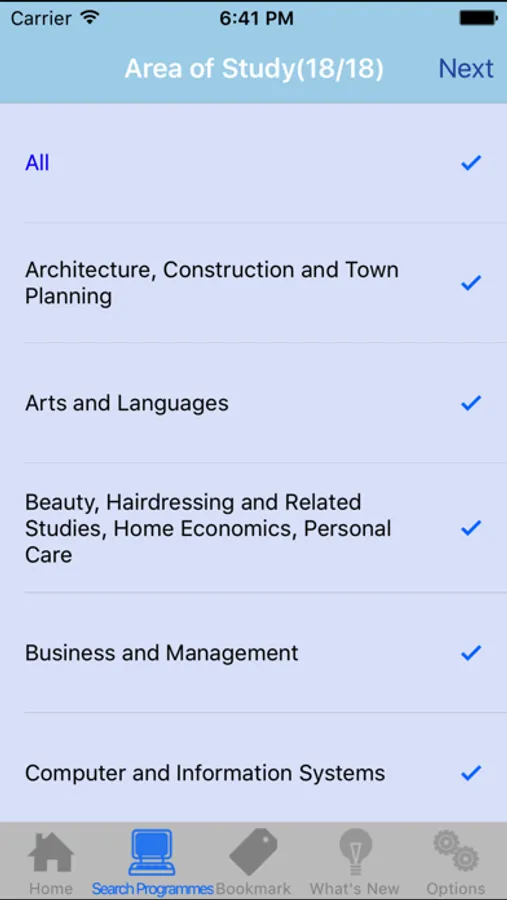 - Examination results can be inputted to search for programmes whose minimum requirements are met