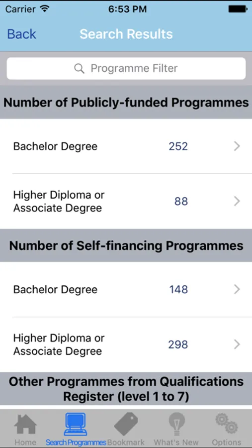 - About 6,000 local programmes from JUPAS, iPASS, the Diploma Yi Jin and Qualifications Register are available for searching