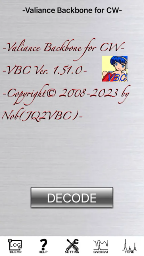 This app. is Morse-code decoder, "Valiance Backbone for CW (VBC)" . The VBC is Morse-code decoder which can be used with built-in microphone of iPhone/iPod touch.