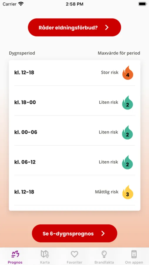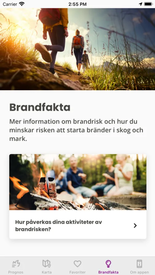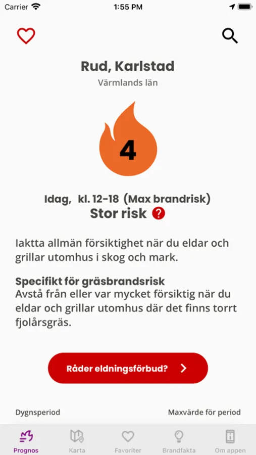 Brandrisk Ute also contains videos, FAQs and information about safer ways to light a fire in forests and on open ground. The app has been developed for iOS. You can also find the fire danger forecasts at msb.se.