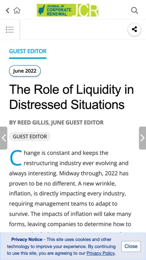 Take the Journal of Corporate Renewal (JCR) wherever you go and stay up-to-date on the latest in turnaround management, corporate restructuring, and distressed investing.