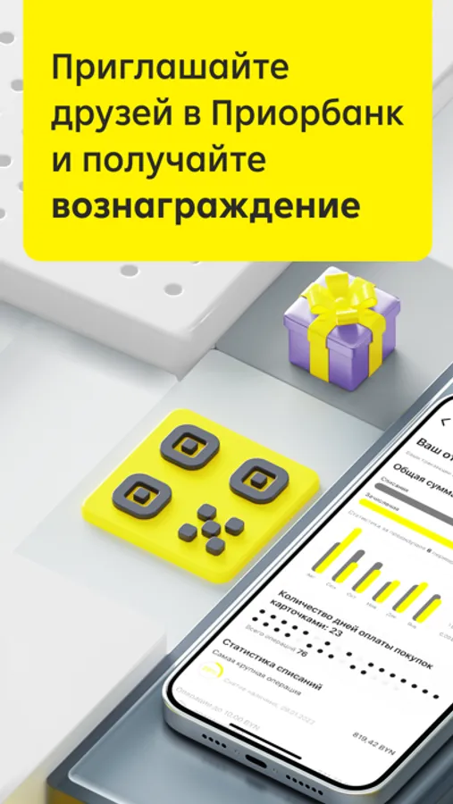 ● приглашать друзей становиться клиентами Приорбанка и получать бонусы,