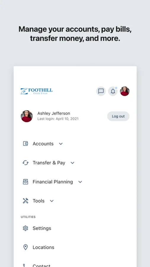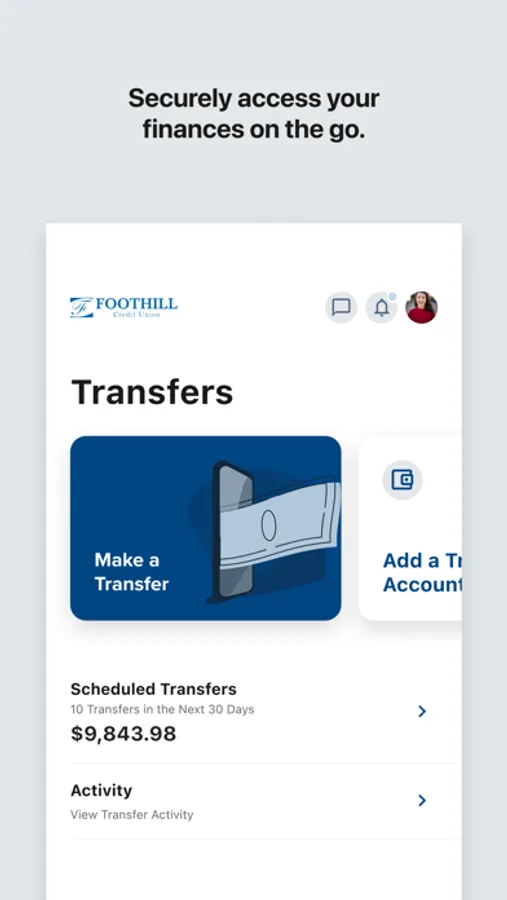 Foothill’s FREE* Mobile Banking app is convenient, secure and allows you to manage your money anytime, anywhere. All of your Foothill checking, savings and loan accounts can be viewed in one place. You can also pay bills, deposit checks, access your statement, make transfers to your accounts and much more all from the convenience of your mobile device.