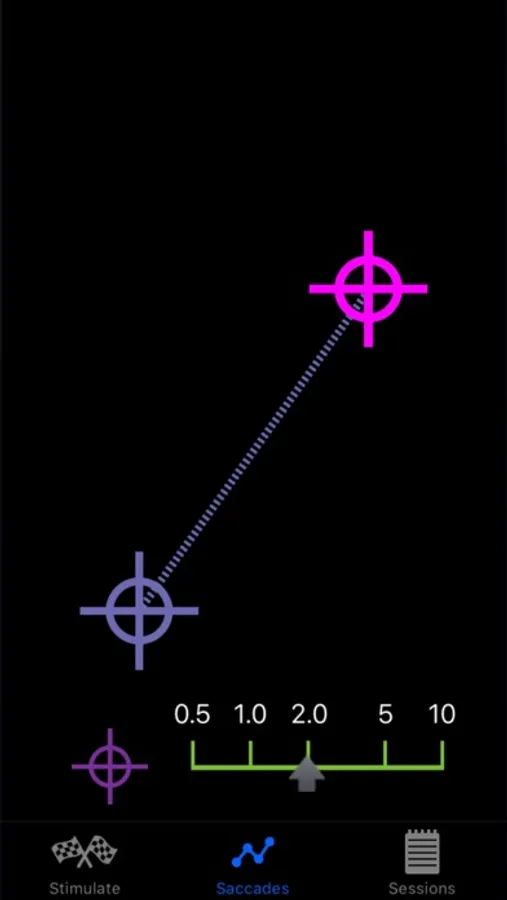 Tap the screen once simultaneously with two fingers to switch between saccades, a dashed line, and pursuits, a solid line.