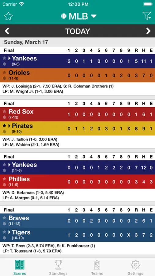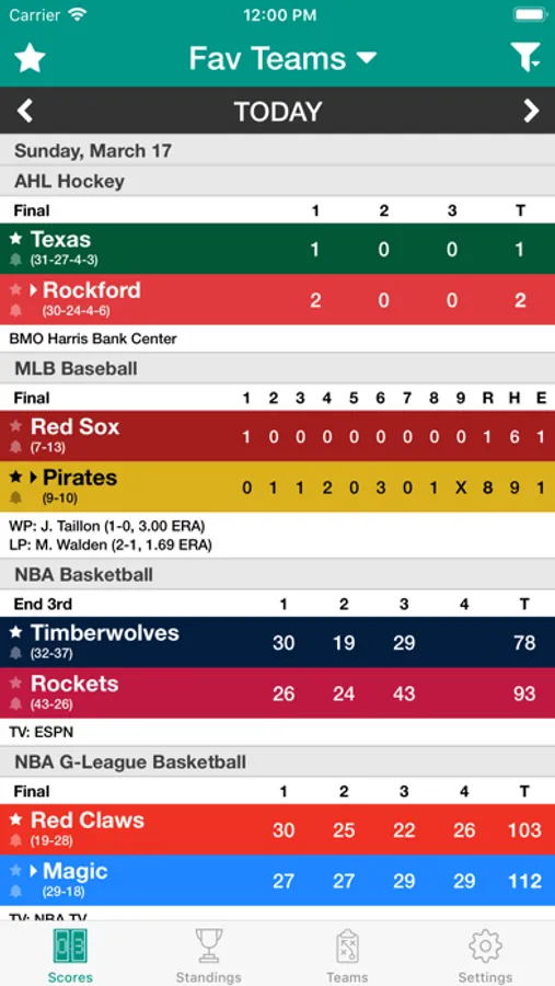 Sports Scores has more leagues than any other app! The app delivers up to date scores, schedules, and standings, and allows you to setup notifications for your favorite teams. The scores constantly update so you will never miss any sports action again!