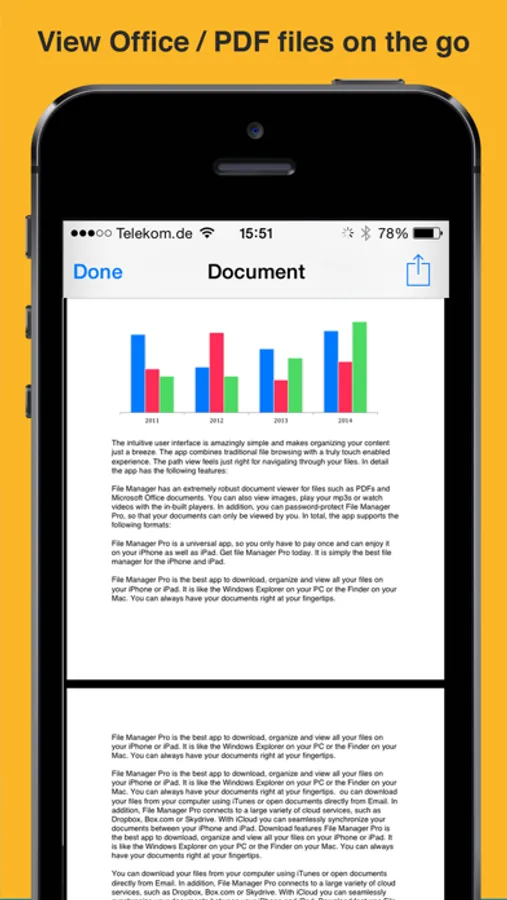 File Manager is a universal app. You can download File Manager for the iPhone and the iPad paying once only. Always have your important files at your fingertips.