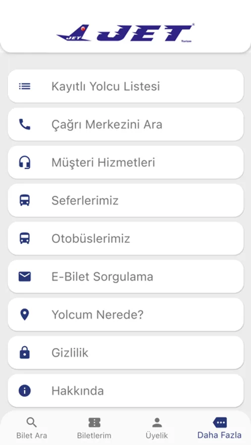 Jet Turizm'in şehirlerarası ulaşım biletlerinin satılmasını sağlayan bir iPhone uygulamasıdır.