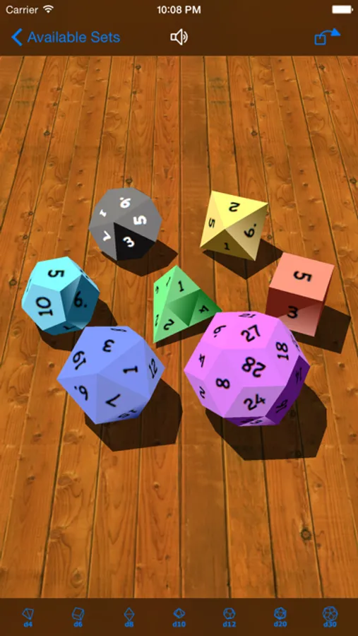 Dice throwing is simulated on a virtual table, with a simple, effective 3D visualization; you can throw them moving the device as you're accustomed with real dice. Then all you have to do is wait until they stop rolling... and cross your fingers!