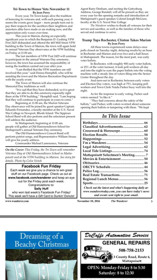 The Wanderer publishes news for the Southeastern Massachusetts towns of Mattapoisett, Marion and Rochester.